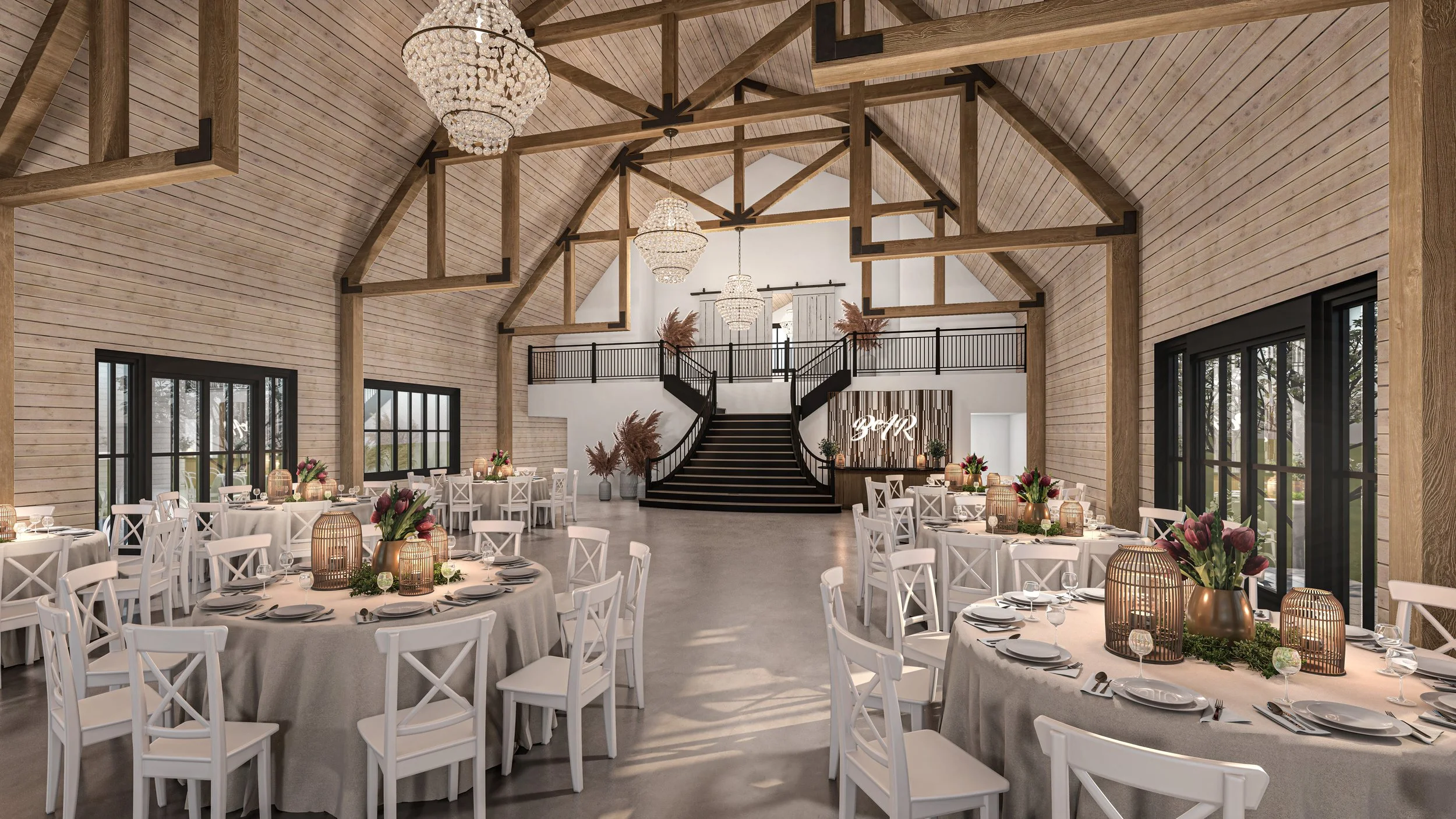 Choose from indoor Barn Chic, outdoor patio with a pond, or many other wonderful outdoor options.